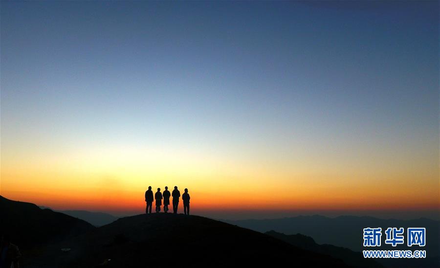 11月2日,游客在摩天嶺草場(chǎng)欣賞夕陽(yáng)景色(無(wú)人機(jī)拍攝)。金秋時(shí)節(jié),廣西融水苗族自治縣桿洞鄉(xiāng)堯告村的摩天嶺草場(chǎng)天高云淡,景色迷人。新華社記者周華攝
