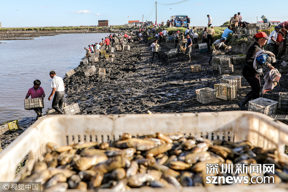 深圳新聞網(wǎng)訊 2018年9月8日,遼寧丹東,早上5點(diǎn),挖蟶人紛紛下到各個(gè)池子,要在海水海泥里艱辛勞作10小時(shí),直至下午3點(diǎn)集體上岸,等待買家的運(yùn)輸車隊(duì)運(yùn)走他們的勞動(dòng)成果。9月初,遼寧沿海養(yǎng)殖區(qū)進(jìn)入養(yǎng)殖海鮮的收獲季。在東港,常常出現(xiàn)數(shù)百人乃至上千人集結(jié)在池子里挖蟶子(這里特指縊蟶,即東港當(dāng)?shù)厝怂f的小人仙。下同)的壯觀景象。在養(yǎng)殖海鮮的收獲季,成群的海鷗趁機(jī)“助陣“,人與大自然和諧共處的畫面令人嘆為觀止。