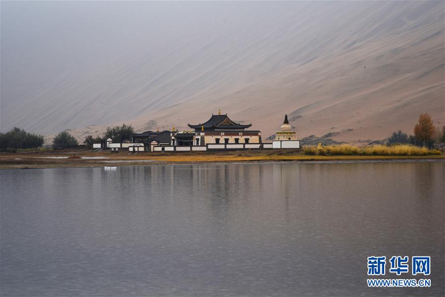 位于沙漠腹地的巴丹吉林廟(10月19日攝)。 巴丹吉林沙漠位于內(nèi)蒙古西部阿拉善盟,是中國第三大沙漠,沙丘起伏的曲線陡變成高聳的沙山,碧藍的湖泊散落在沙海間。 新華社記者 李仁虎 攝