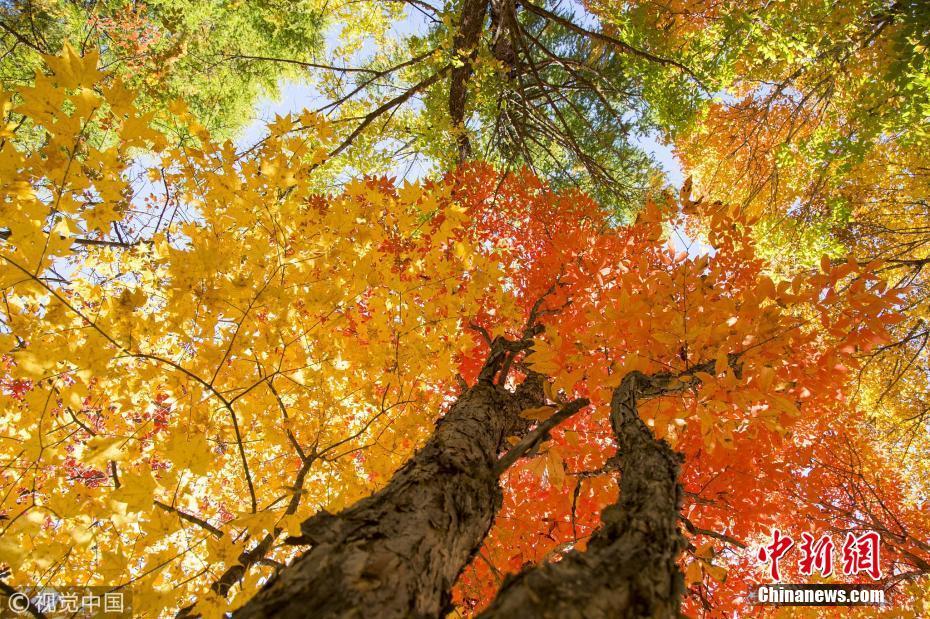 深秋時(shí)節(jié),山東濟(jì)南楔子山山脊兩邊種植的植被形成“一山雙色”景觀,令人稱奇。