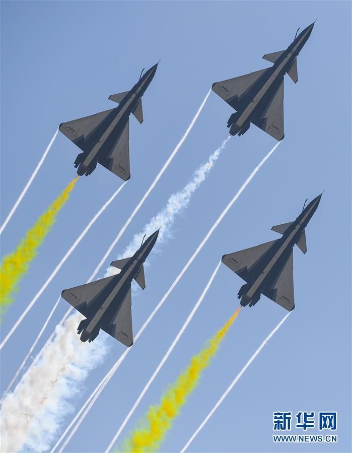 11月6日,中國空軍八一飛行表演隊(duì)在航展現(xiàn)場進(jìn)行飛行表演。當(dāng)日,第十二屆中國國際航空航天博覽會在珠海開幕。 新華社記者鄧華攝