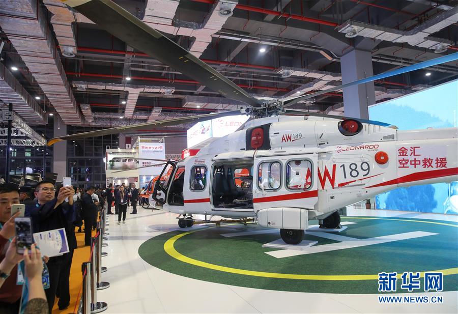 11月6日,觀眾在參觀意大利萊奧納多直升機公司展出的AW189直升機。 新華社記者 丁汀 攝