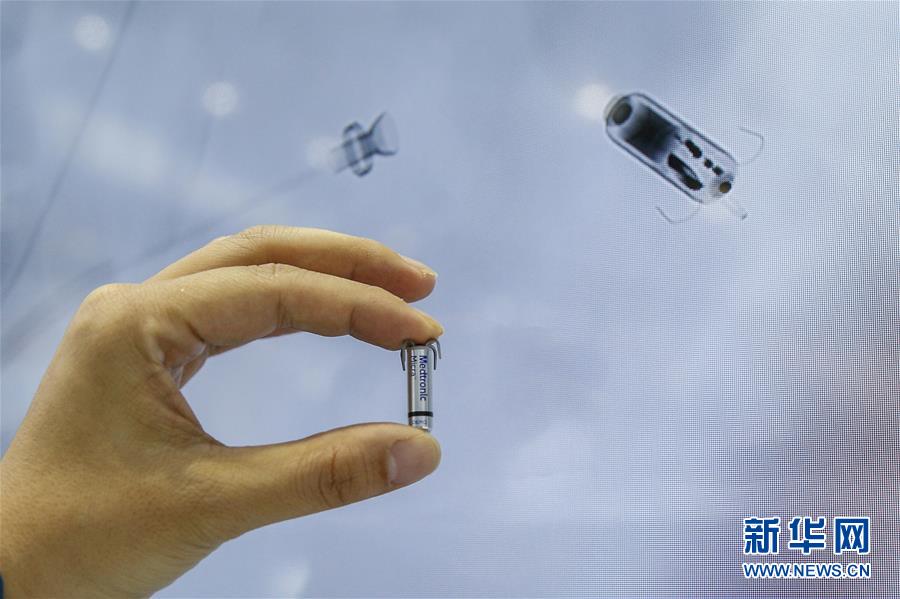 11月6日,美國美敦力公司工作人員展示全球最小的心臟起搏器。它也是全球首款無導線心臟起搏器,體積僅有膠囊大小,重量僅2克。 新華社記者 張玉薇 攝