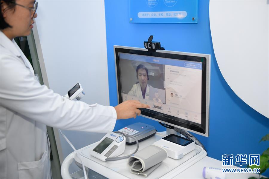11月6日,烏鎮(zhèn)互聯(lián)網(wǎng)醫(yī)院的員工在操作“智能醫(yī)務室”與醫(yī)生的視頻連線功能。據(jù)了解,“智能醫(yī)務室”由智能移動醫(yī)療一體機、智能藥柜以及一系列檢查設備組成,根據(jù)健康檔案和檢查結果,視頻連接家庭醫(yī)生就能解決常見的醫(yī)療健康問題。 新華社記者黃宗治攝
