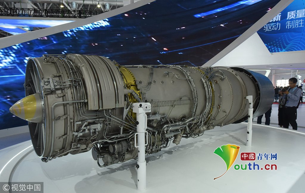 2018年11月7日,珠海航展上,觀眾在觀看國(guó)產(chǎn)新型渦扇發(fā)動(dòng)機(jī)“太行發(fā)動(dòng)機(jī)”。之前的航展上殲10B依托國(guó)產(chǎn)發(fā)動(dòng)機(jī)一鳴驚人,獲得滿場(chǎng)喝彩。