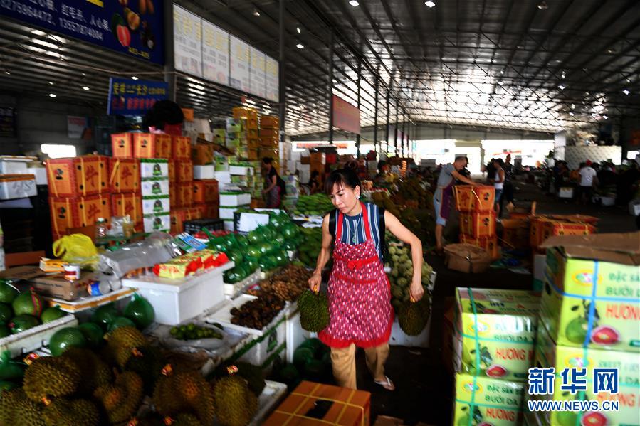 這是廣西憑祥市物流園內的水果交易市場一角(9月4日攝)。新華社記者 張愛林 攝