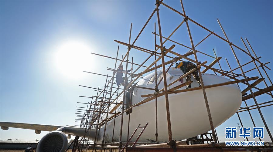 遼寧開原農(nóng)民朱躍從小很喜歡飛機,從2017年開始自掏腰包花費200多萬元和團隊成員在老城街道前三臺子村純手工制作了一架仿“空客320”飛機。目前,“飛機”外殼已經(jīng)做好,進入內(nèi)部裝修和外部噴漆階段,等“飛機”建造好以后,他想把“飛機”做成主題餐廳、婚紗攝影和飛行駕駛體驗于一體的項目。“它雖然不能飛,整個制作過程也很艱難,但圓了自己的飛機夢”,朱躍說。