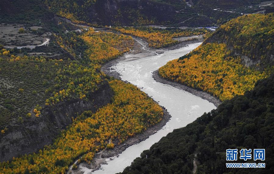 空中俯瞰通往加拉村已淹沒(méi)的公路(10月18日攝)。 新華社記者 普布扎西攝