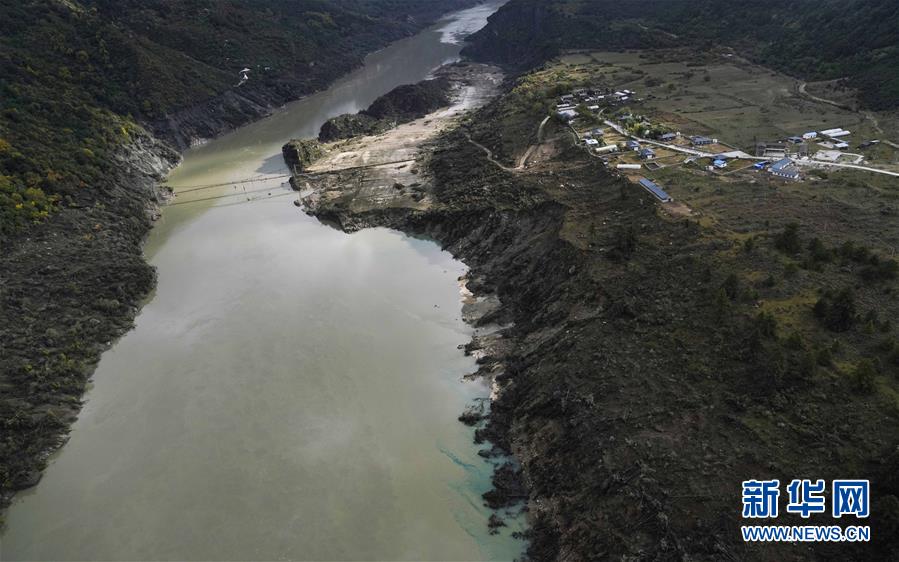 10月20日拍攝的西藏雅魯藏布江米林縣堰塞湖自然過(guò)流后的加拉村。 10月19日13時(shí)30分,西藏雅魯藏布江米林縣堰塞湖開(kāi)始自然過(guò)流。記者從應(yīng)急管理部牽頭的聯(lián)合工作組獲悉,截至20日7時(shí),雅魯藏布江堰塞湖壩前水位已下降56米,估算留存水量1.6億立方米,堰塞湖洪水威脅得到緩解,防洪安全風(fēng)險(xiǎn)大大減輕,并將繼續(xù)降低。 10月20日,記者乘坐直升機(jī)從空中拍攝了雅魯藏布江堰塞湖自然過(guò)流的畫(huà)面。 新華社記者普布扎西攝
