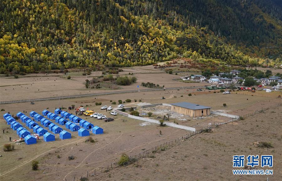 這是西藏昌都市江達(dá)縣波羅鄉(xiāng)一臨時(shí)過(guò)渡安置點(diǎn)(10月14日無(wú)人機(jī)拍攝)。