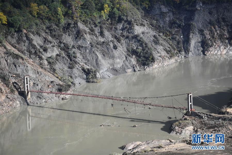 堰塞體現(xiàn)場(chǎng)圖片(10月18日攝)。 新華社記者 普布扎西攝