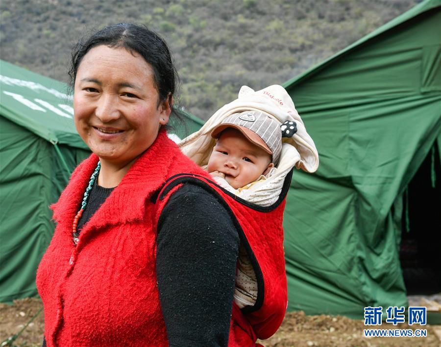這是在距波羅鄉(xiāng)政府約6公里的一處臨時安置點內(nèi)拍攝的群眾(10月14日攝)。 新華社記者 劉東君 攝