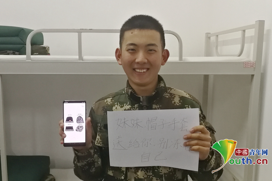 “俺們東北那旮瘩冬天特別冷,給妹妹買個防寒帽和棉手套,這樣上學(xué)就不會冷了?!蔽渚本┛傟爤?zhí)勤第二支隊供圖。