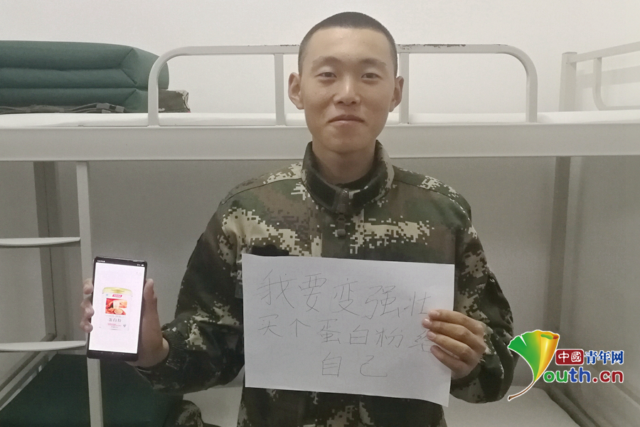 “班長總說我太瘦,買罐蛋白粉,我要快點變強壯?!蔽渚本┛傟爤?zhí)勤第二支隊供圖。
