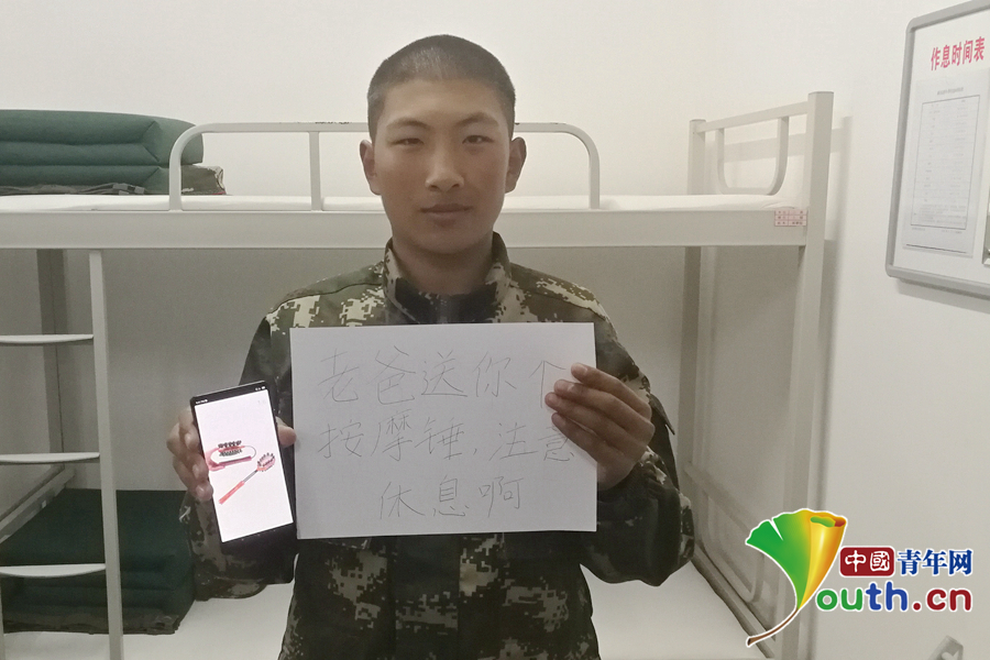 “爸爸說最近肩膀有點痛,給他買個按摩錘,工作別太辛苦,要注意休息。”武警北京總隊執(zhí)勤第二支隊供圖。
