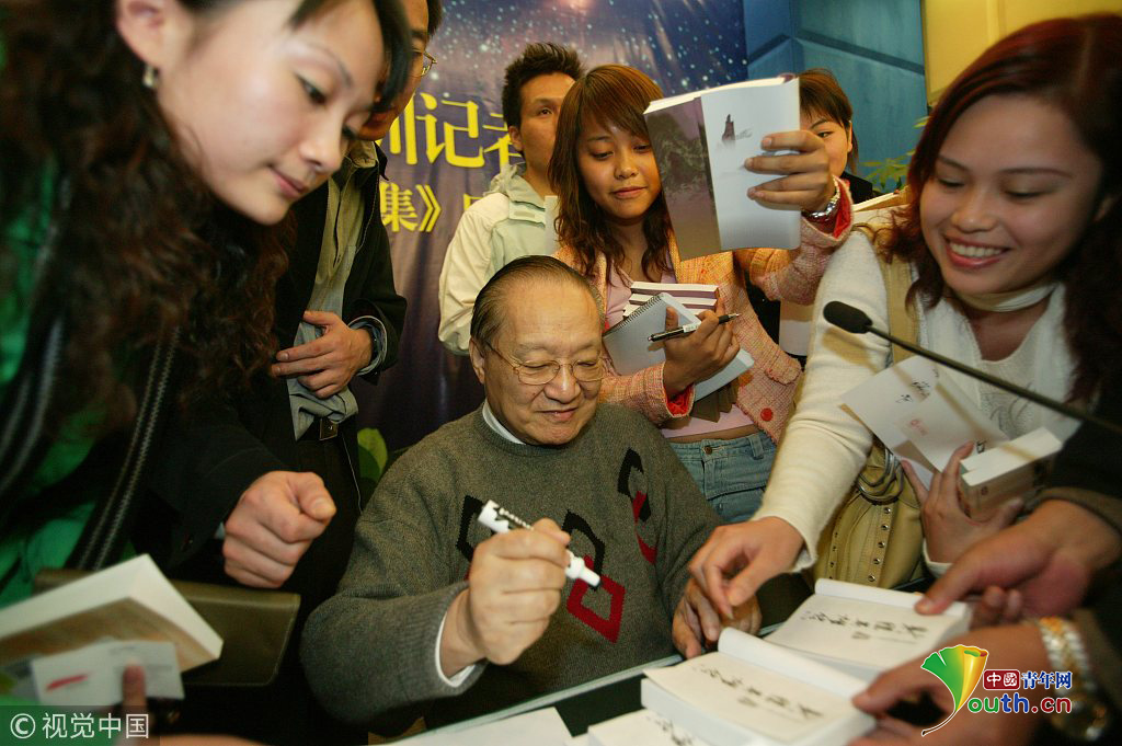 2003年7月25日,杭州,金庸給金迷簽名。圖片作者:史訓(xùn)鋒
