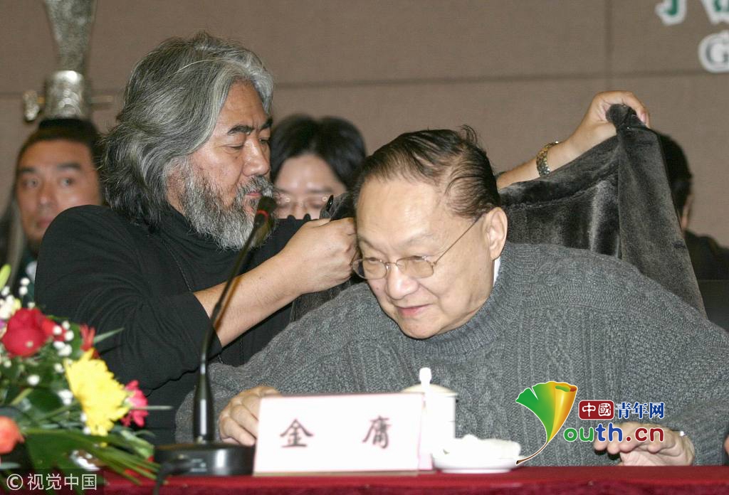 2003您7月24日,杭州,在回答記者提問時(shí),金庸先生回答說已經(jīng)收了3個(gè)學(xué)生。圖片作者:羅先明