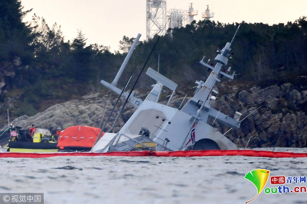 挪威:被撞翻的海軍護(hù)衛(wèi)艦打撈出水