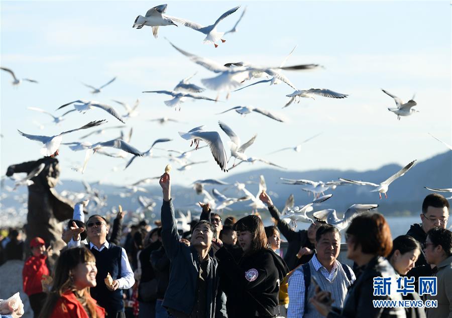 近日,云南省昆明市陽(yáng)光明媚、氣候宜人,不少市民和游客來到滇池大壩、大觀公園等地,觀賞前來越冬的紅嘴鷗。