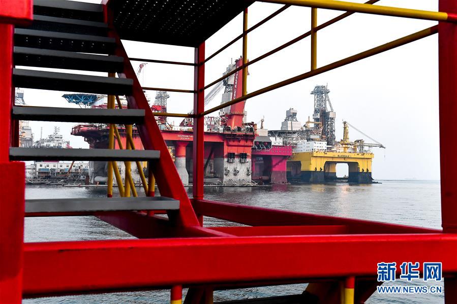 中集來福士海洋工程有限公司煙臺(tái)基地深水碼頭停放的半潛式鉆井平臺(tái)(11月14日攝)。新華社記者郭緒雷攝