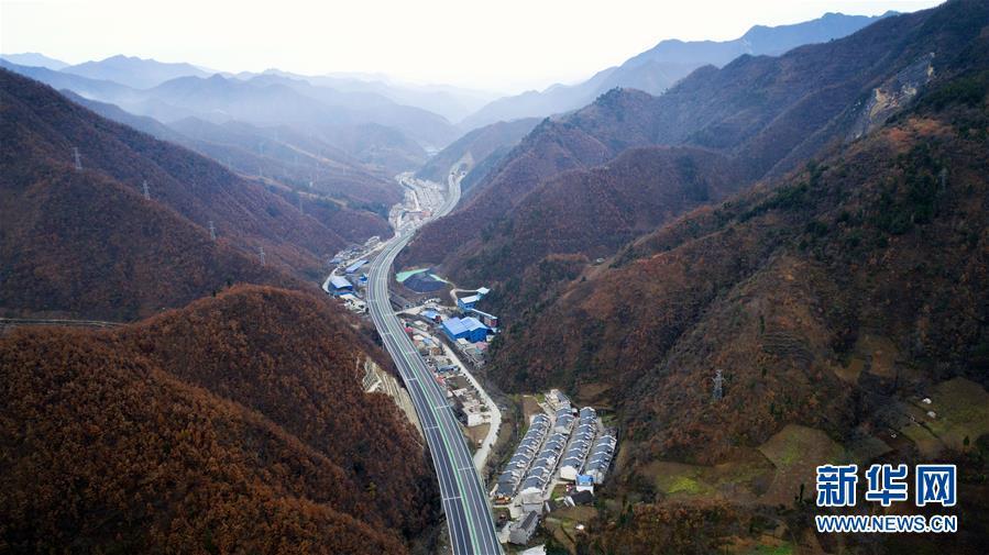 11月20日拍攝的水陽高速公路與福銀高速公路相接的樞紐互通式立交(無人機拍攝)。 近日,記者從陜西省交通建設(shè)集團公司了解到,陜西柞水至山陽高速公路已全線貫通即將通車。據(jù)介紹,(柞)水(山)陽高速公路全長78.8公里,開通后將實現(xiàn)包茂高速、福銀高速在陜南商洛地區(qū)的連接,開辟出秦嶺南麓的一條橫向高速大通道,對完善陜西高速公路路網(wǎng)結(jié)構(gòu)、促進陜南區(qū)域經(jīng)濟發(fā)展、加快山區(qū)群眾脫貧致富具有重要意義。 新華社記者劉瀟攝