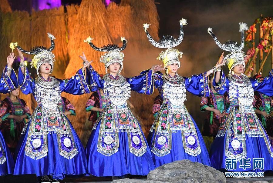 11月21日,演員表演歌舞《依依送客》。 當日,廣西柳州市第一屆旅游產(chǎn)業(yè)發(fā)展大會暨2018第十八屆中國·融水苗族蘆笙斗馬節(jié)開幕式晚會在融水苗族自治縣舉行。 新華社記者 周華 攝
