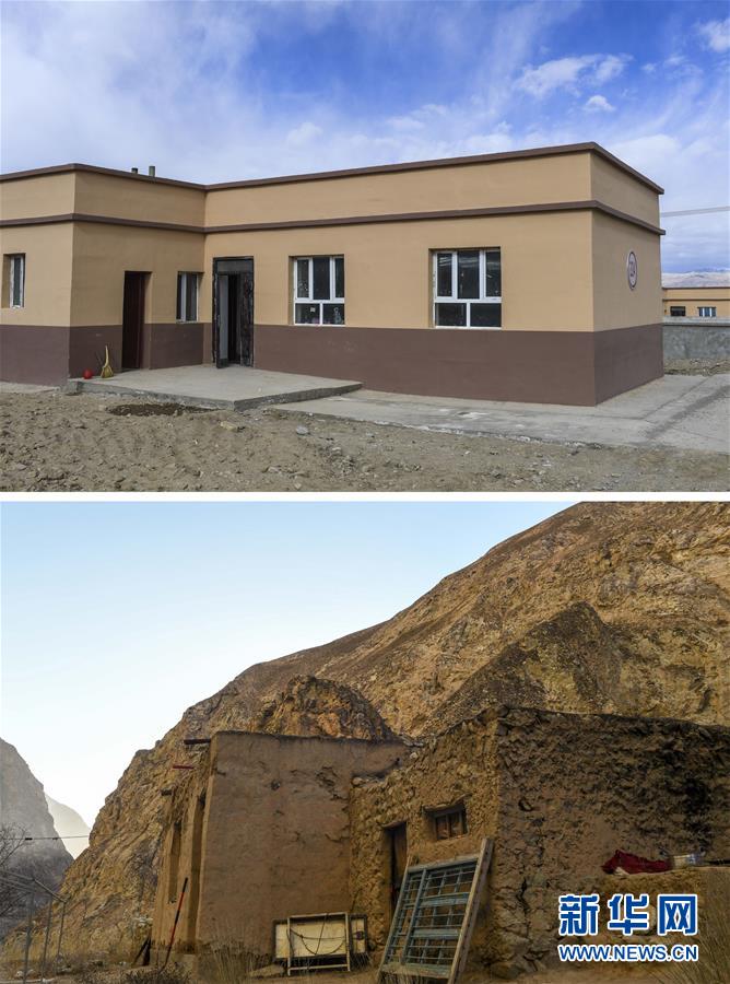 拼版照片:上圖為都熱·加爾曼在塔提庫(kù)力易地扶貧搬遷安置點(diǎn)的80平方米的新房(11月18日攝);下圖為都熱·加爾曼在阿克托尕欄桿村一組的老房子外景(11月17日攝)。新華社記者胡虎虎攝