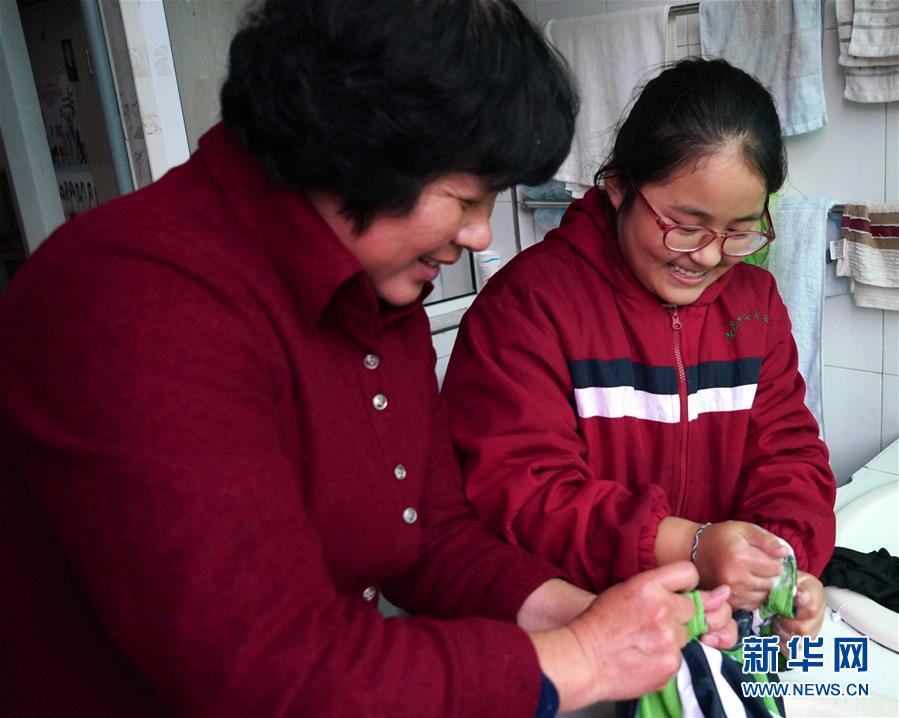 11月16日,劉和平和南昌市第十七中學西藏班的學生一起洗衣服。新華社記者 胡晨歡 攝