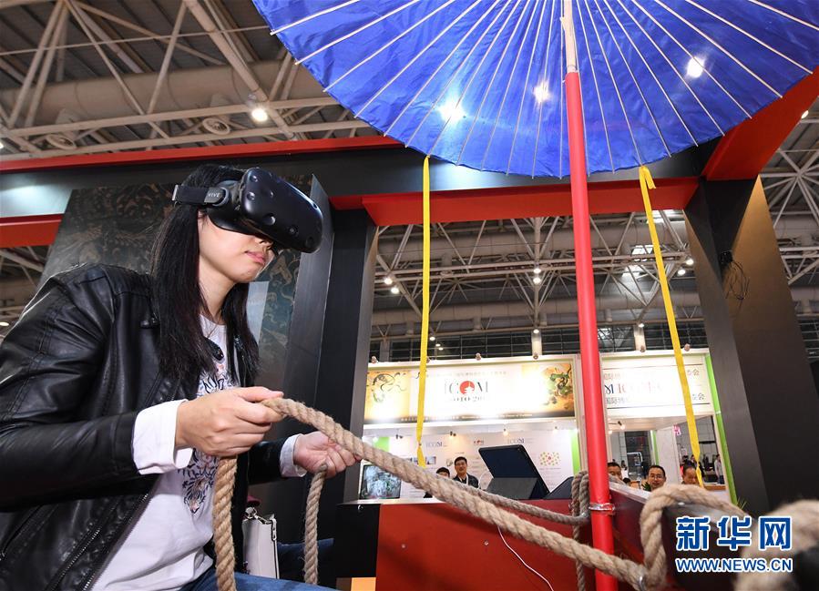 11月23日,參觀者在使用VR眼鏡體驗(yàn)虛擬現(xiàn)實(shí)考古場(chǎng)景。新華社記者李賀攝