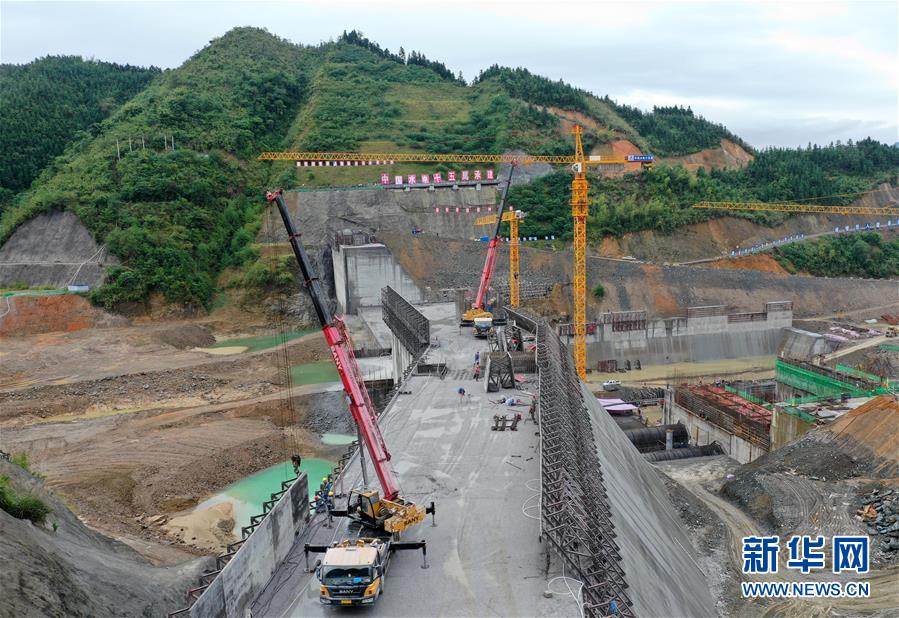 11月15日無人機(jī)拍攝的廣西落久水利樞紐工程施工現(xiàn)場(chǎng)。目前,廣西柳江防洪控制性工程落久水利樞紐工程各項(xiàng)建設(shè)進(jìn)展順利,主壩工程項(xiàng)目已完成總體建設(shè)的60%。落久水利樞紐工程位于廣西柳江流域支流貝江下游,是一座以防洪為主,兼顧灌溉、供水、發(fā)電和航運(yùn)等任務(wù)的綜合性水利樞紐工程。新華社記者 周華 攝