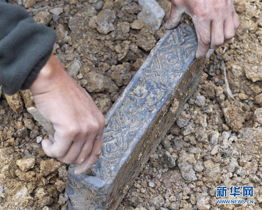 11月15日,工人正在清理出土的磚塊。