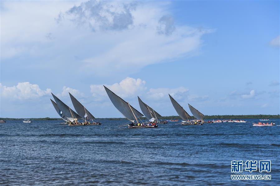 11月24日,拉穆居民在肯尼亞東部印度洋上比賽獨(dú)桅三角帆船。這種帆船曾是東非海洋貿(mào)易的主要交通工具,拉穆本地居民至今還以能駕馭三角帆船為榮。