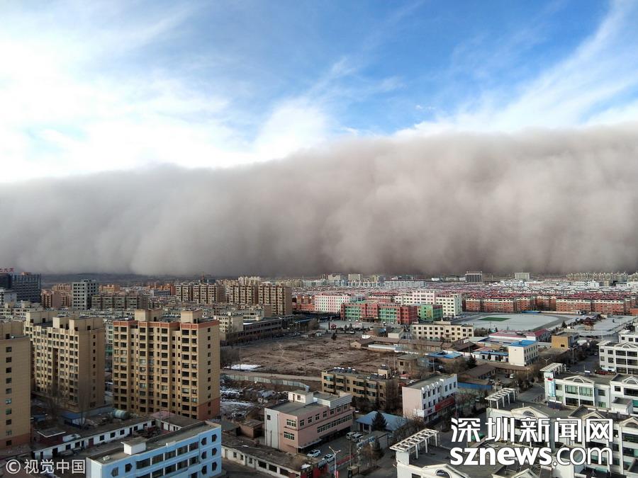 深圳新聞網(wǎng)訊 2018年11月25日,甘肅張掖沙塵暴來襲,遠(yuǎn)觀“沙墻”遮天蔽日。張掖市氣象臺(tái)2018年11月25日16時(shí)45分發(fā)布沙塵暴黃色預(yù)警信號(hào):我市出現(xiàn)7-8級(jí)西北風(fēng),并伴有沙塵天氣,預(yù)計(jì)未來12小時(shí)內(nèi),我市甘州區(qū)、高臺(tái)、臨澤、山丹將出現(xiàn)沙塵暴天氣(能見度小于1000米),請(qǐng)注意防范。