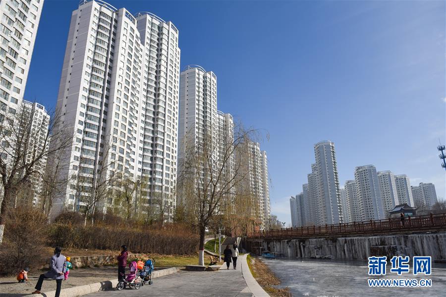 11月28日,市民帶著孩子在西寧市海湖新區(qū)的公園內(nèi)游玩。