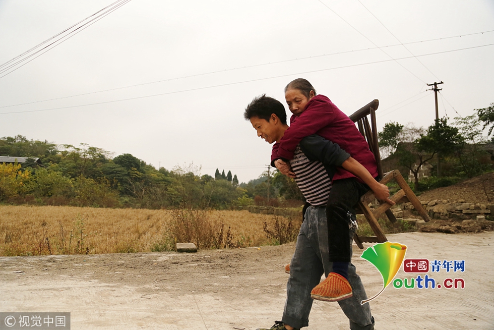 因?yàn)橐酶嗟臅r(shí)間照顧母親,能接受王顯強(qiáng)的企業(yè)并不多,好不容易進(jìn)了廠,給他的工資也不高?!皦蛄耍灰莛B(yǎng)活我和媽媽,我不在乎其他的。”就這樣,王顯強(qiáng)背著母親輾轉(zhuǎn)重慶主城,打工了15年。