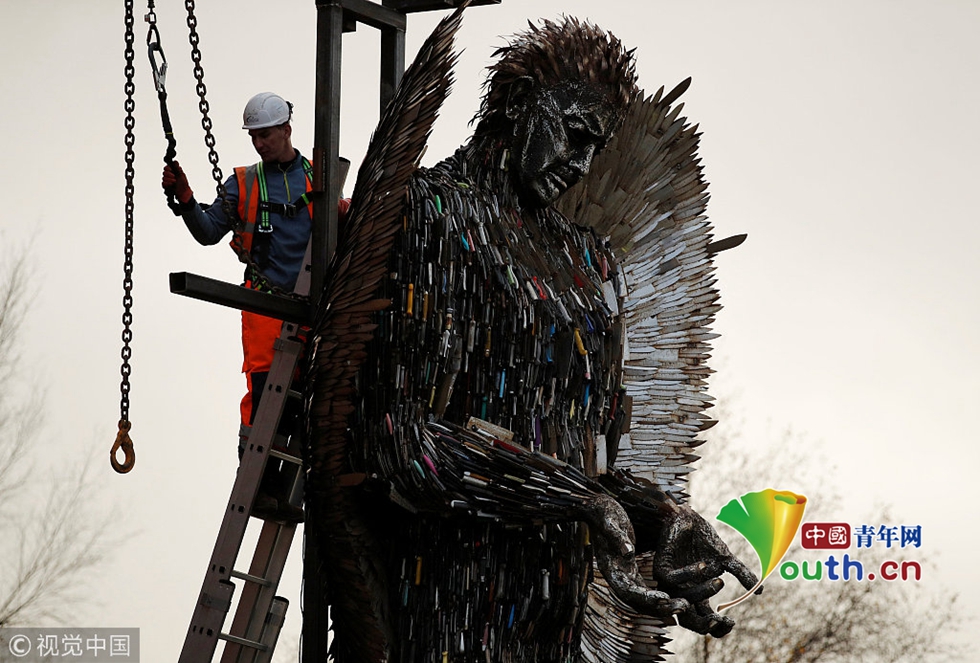 英警察沒收十萬把刀 做成“天使”雕像