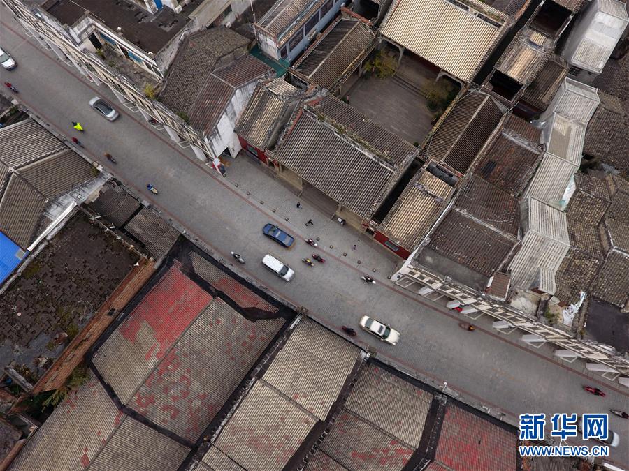 這是廣西百色市解放街上的粵東會館(右上)及周邊老建筑(11月27日無人機(jī)拍攝)。 新華社記者 陸波岸攝