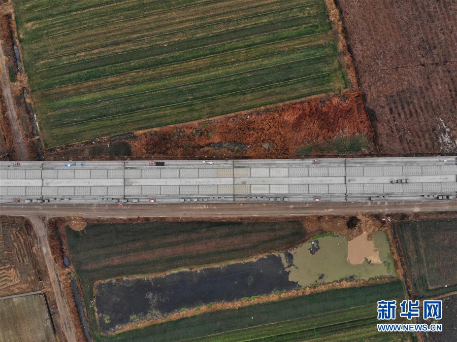 12月2日拍攝的魯南高鐵山東臨沂段(無人機拍攝)。 新華社記者 邢廣利攝