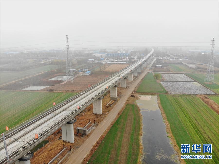 12月2日拍攝的魯南高鐵山東臨沂段(無(wú)人機(jī)拍攝)。 新華社記者 邢廣利攝