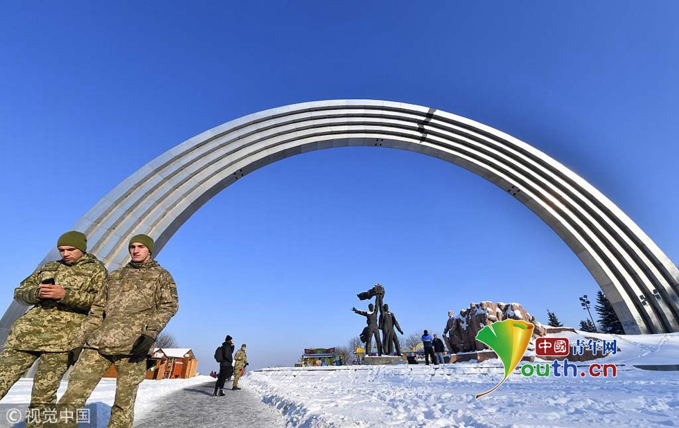 當?shù)貢r間2018年12月2日,烏克蘭基輔,蘇聯(lián)時期象征著烏克蘭和俄羅斯友誼拱形建筑被不知名藝術(shù)家添加了一道裂縫。俄烏黑海沖突后,緊張局勢升級,烏克蘭總統(tǒng)波羅申科于26日簽署戒嚴令。按照國家安全與國防委員會的決定,宣布批準烏克蘭全國實施戰(zhàn)時狀態(tài)。