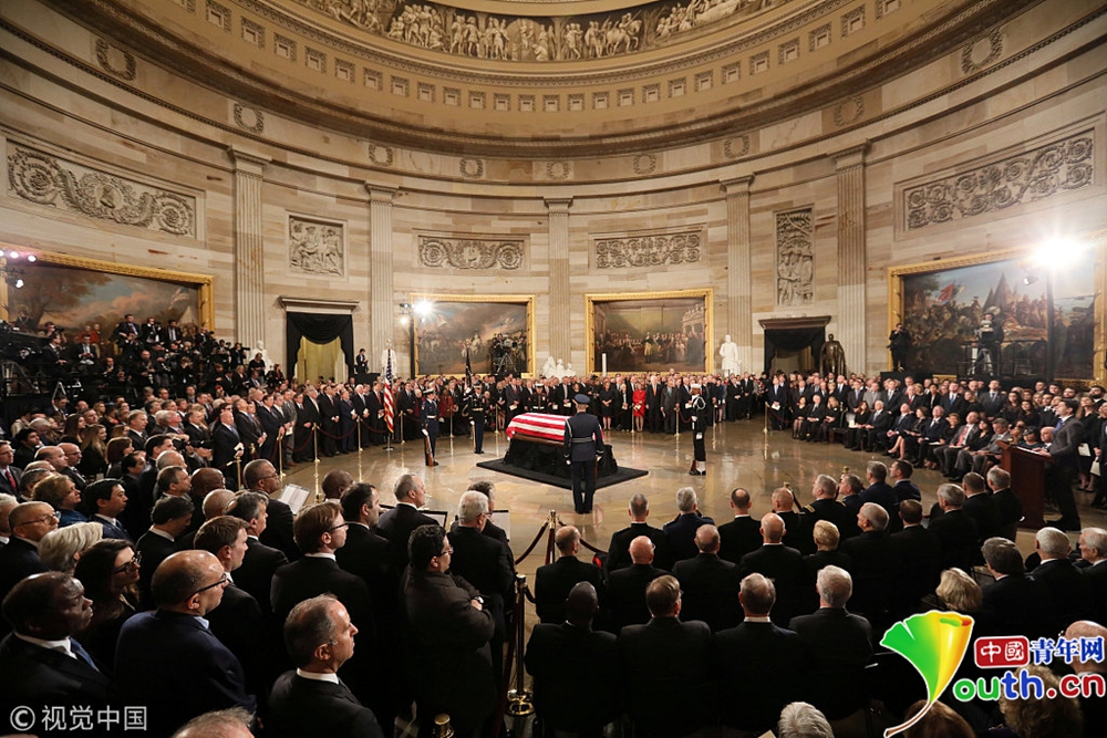 美國歷史上,只有33名逝者的遺體擺放在國會大廈圓形大廳內(nèi)供人們瞻仰,包括從“一戰(zhàn)”到“越戰(zhàn)”期間的11位總統(tǒng)以及不知名士兵。