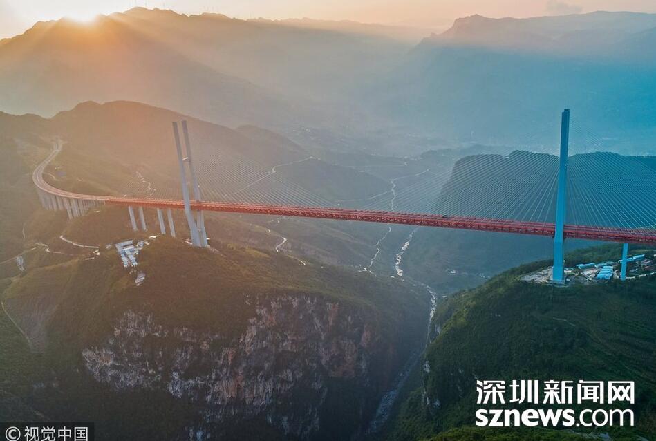 畢都高速公路北盤(pán)江大橋是杭瑞高速公路畢都段的控制性工程,位于貴州省和云南省交界處,由貴州省和云南省共建。該橋橋面至江面高差達(dá)565米,成為目前世界第一高橋。主橋?yàn)殇撹炝盒崩瓨颍骺?20米,目前位居同類型橋梁2016年12月29日正式通車。