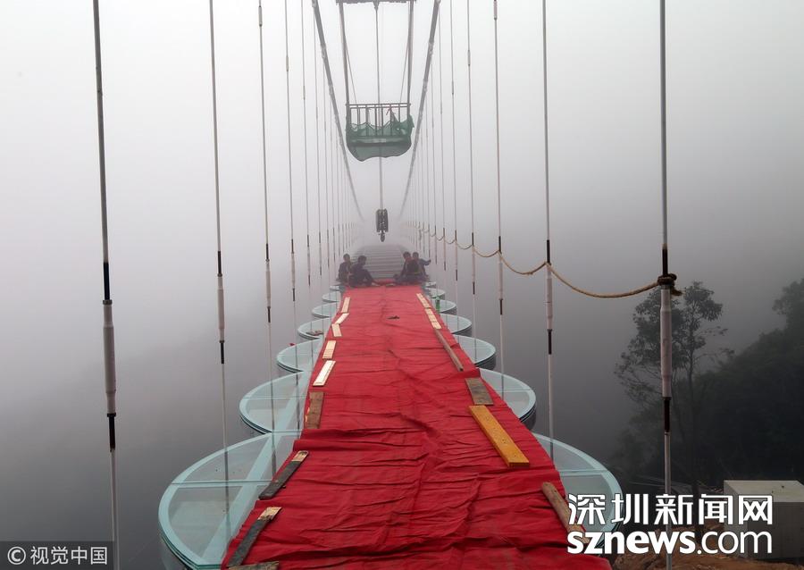 深圳新聞網(wǎng)訊 武義縣大紅巖景區(qū)在227500平方懸崖上建造的玻璃桟道,通過有關(guān)部驗收,10月1日將開放接待游客。武義縣大紅巖是國家級風(fēng)景名勝區(qū),今年景區(qū)利用長650米、高350米的懸崖峭壁建造玻璃桟道,為景區(qū)又增添了一道壯觀的景點。