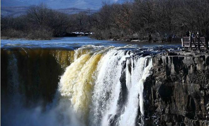 鏡泊湖飛瀑“逆”冬展奇觀