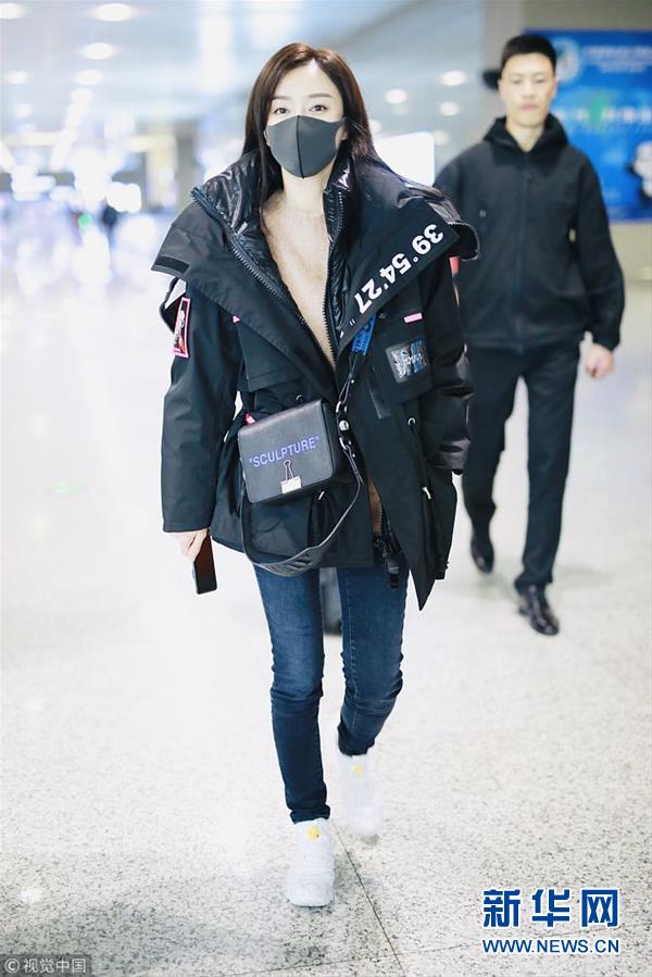 秦嵐潮味棉服亮相機(jī)場(chǎng) 口罩遮面露甜笑