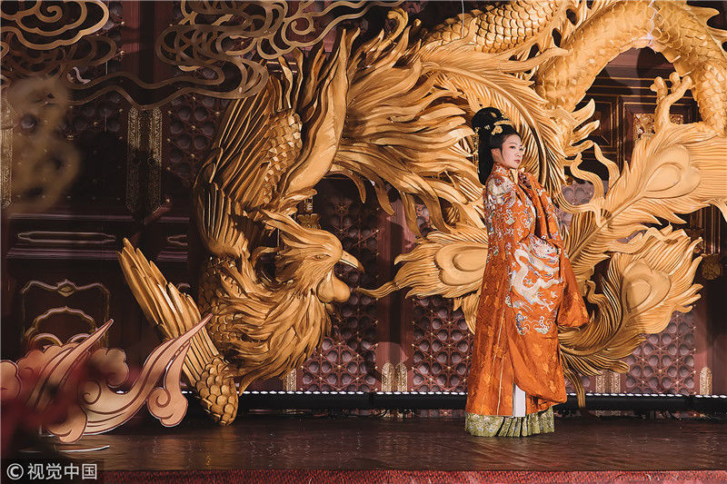 2018年11月18日,浙江嘉興。海寧一位女孩為了籌辦自己的漢婚大禮,囤衣服、囤首飾,準(zhǔn)備整整六年。圖為婚禮現(xiàn)場。周建仕/視覺中國