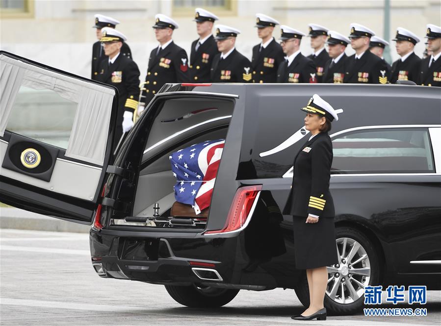 12月5日,在美國首都華盛頓,美國前總統(tǒng)喬治·赫伯特·沃克·布什的靈柩離開國會大廈。