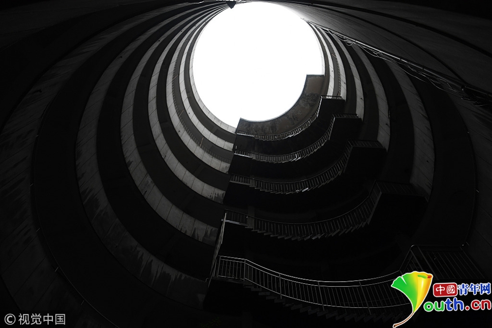 魔幻重慶再添新景觀 公交車穿8層空心圓筒樓