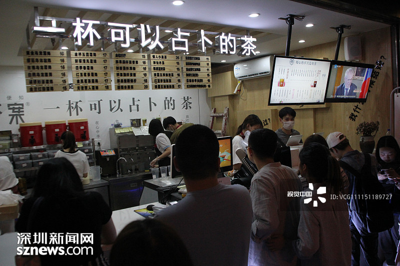 2018年4月21日,重慶,萬達(dá)廣場附近有一家新開業(yè)的網(wǎng)紅答案茶的冷飲店,這家答案茶冷飲店人氣異?;鸨T前已排起了兩條“長龍”。