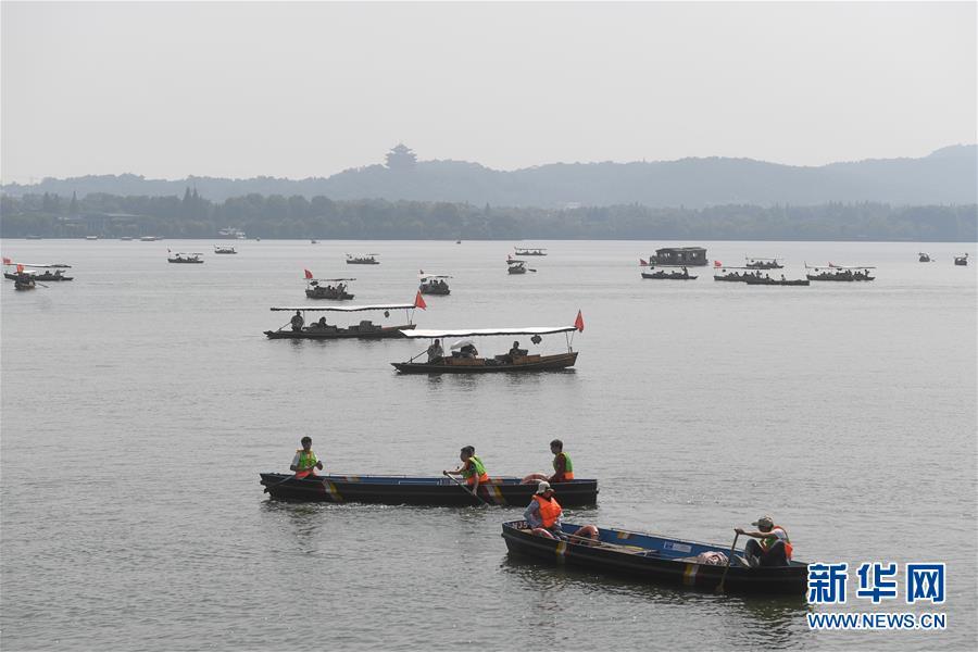 8月14日,游客乘船在西湖游玩(無(wú)人機(jī)拍攝)?!⌒氯A社記者 翁忻旸 攝